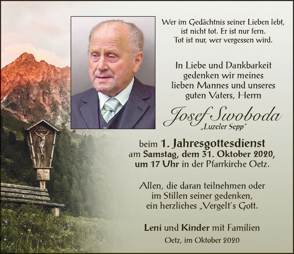 Liabe Leni, liabe Trauerfamilien: inser aufrichtiges Beileid und viel Kroft in dear schwaren Zeit wünschen Hildegard und Gustl.31.10.2019 09:28 - Gstrein Gustl