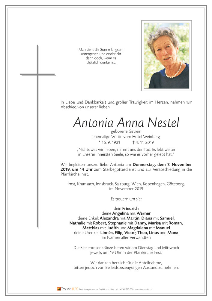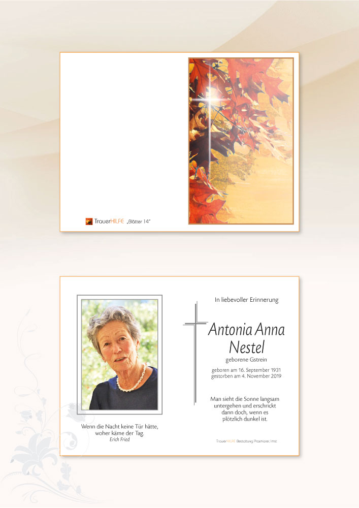 Neue Kerze für Antonia Anna Nestel entzünden.