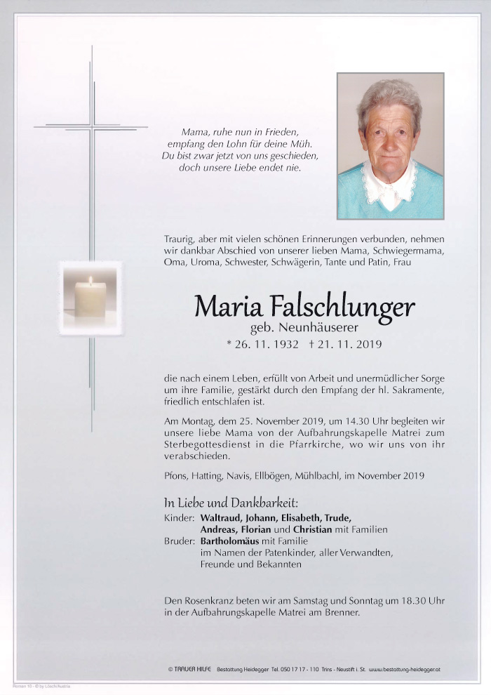Friedhof Matrei am Brenner, † 21.11.2019 (86 Jahre)