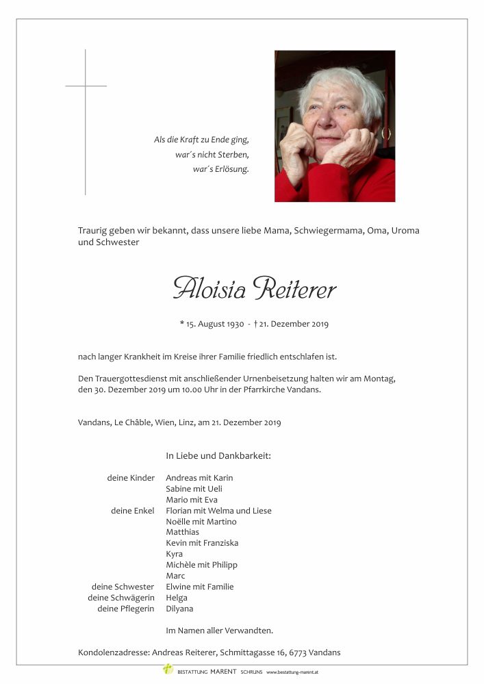 Friedhof Vandans, † 21.12.2019 (89 Jahre)