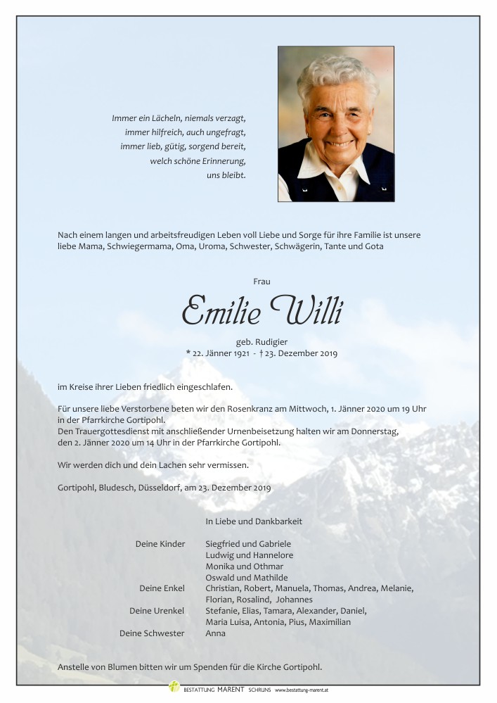 Bestattung wurde durchgeführt von: Peter Marent Bestattung Marent GmbH Gantschierstraße 80 6780 - Schruns Tel.: 05556 77070 zum Bestatter