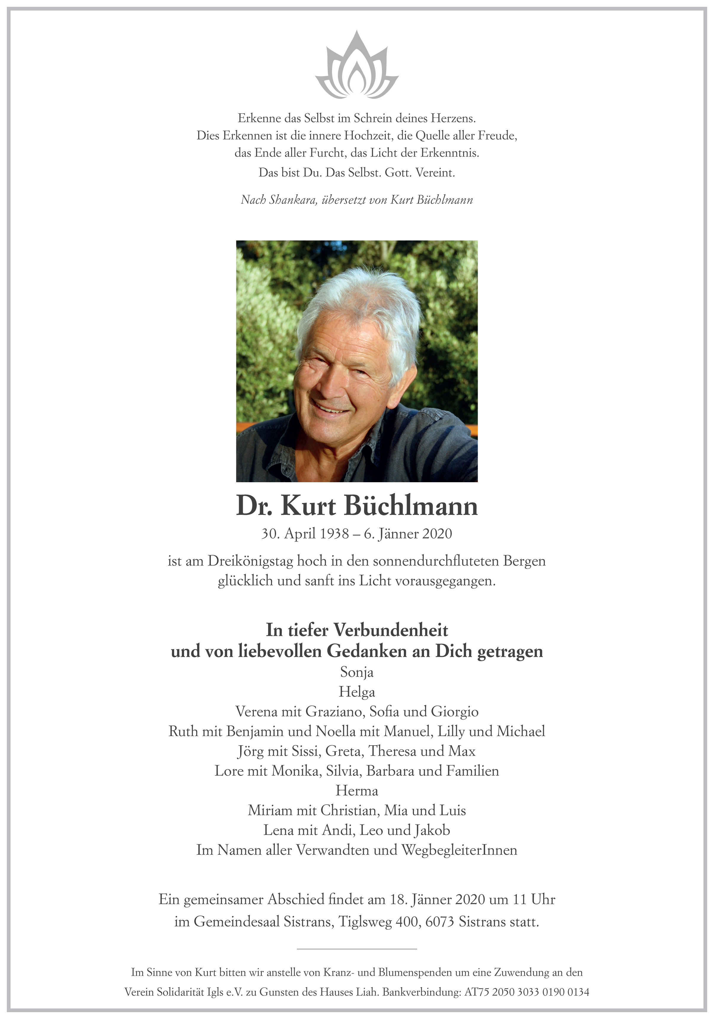 Neue Kerze für Dr. Kurt Büchlmann entzünden.