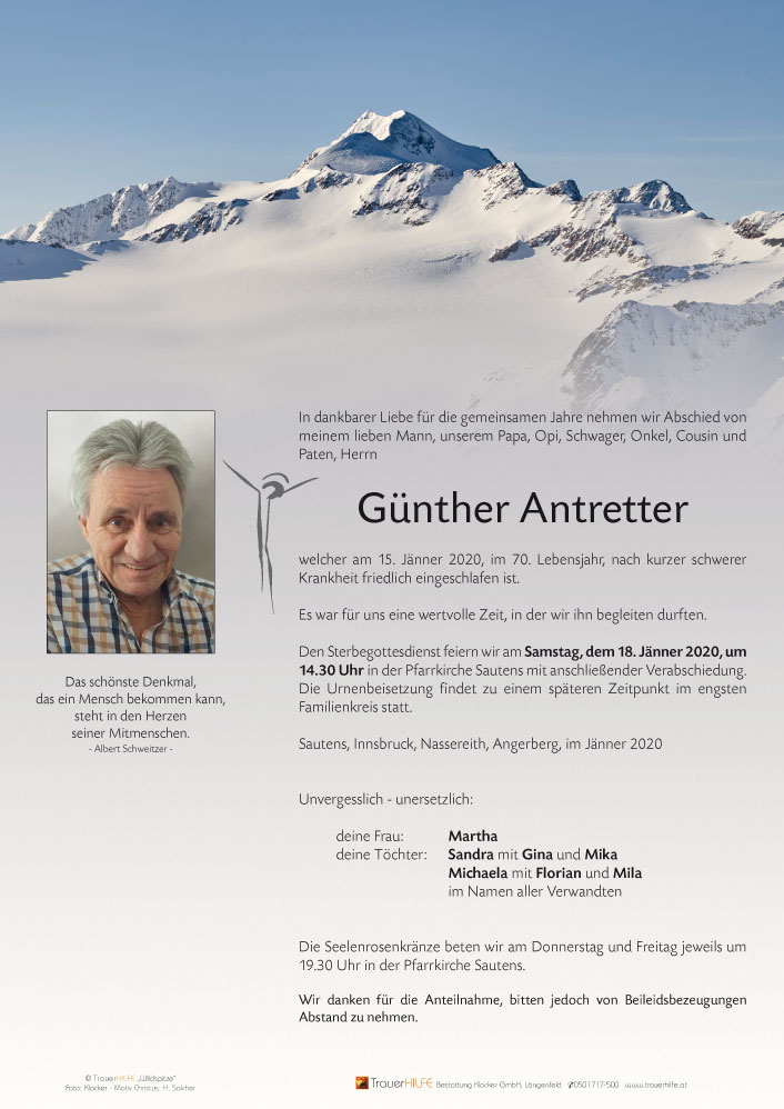 Unsere Aufrichtige Anteilnahme und unser Beileid Patricia und Toni mit Familie15.01.2020 21:32 - Patricia Gstrein