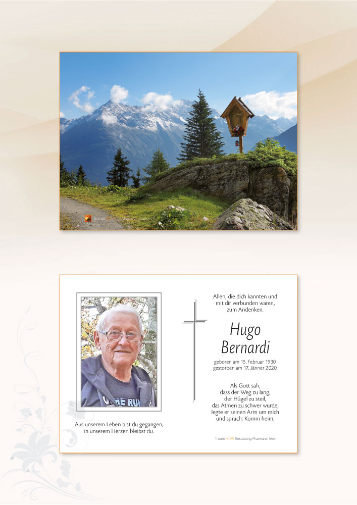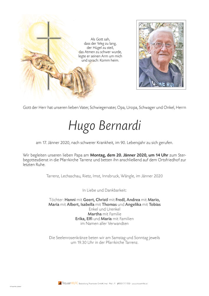 Am Ende des Weges ist Friede und Hugo ist nun am Ende des Weges angekommen, also bei Gott und der hat bestimmt schon ein schönes Platzl für ihn hergerichtet !