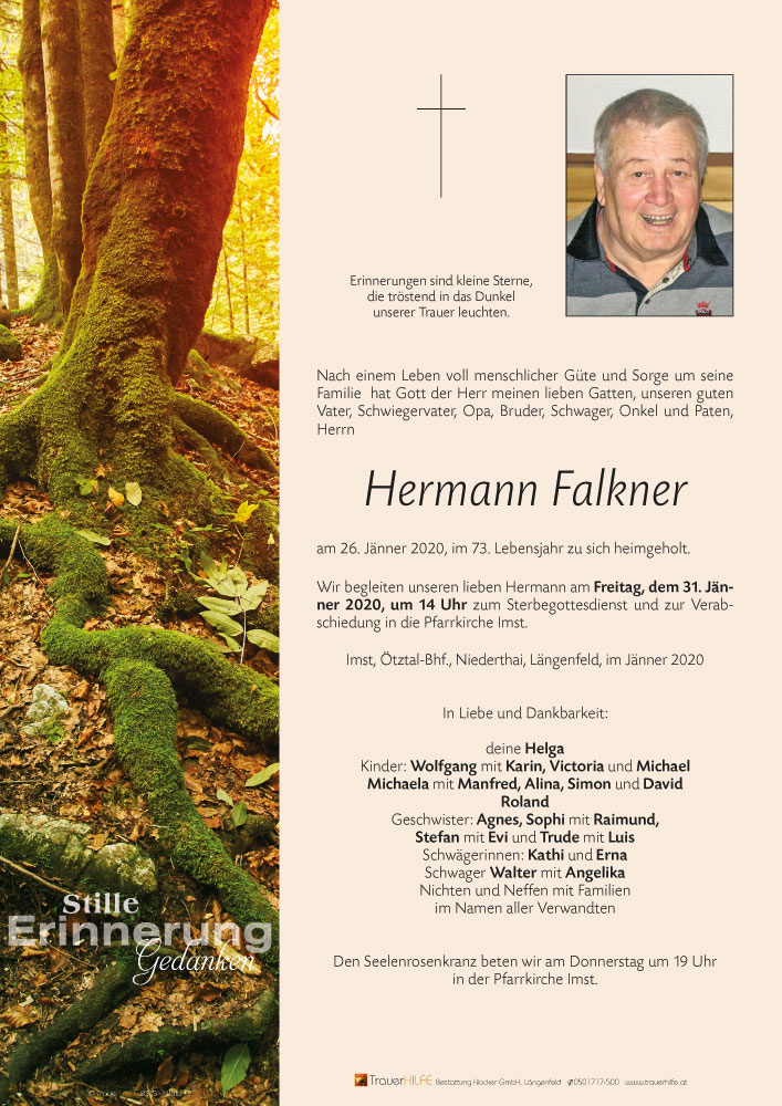Wir wünschen euch viel Kraft und Segen, dass ihr in dieser schweren Zeit einander trösten könnt, dass ihr spürt, dass Hermann bei euch ist, wohin ihr auch geht.
