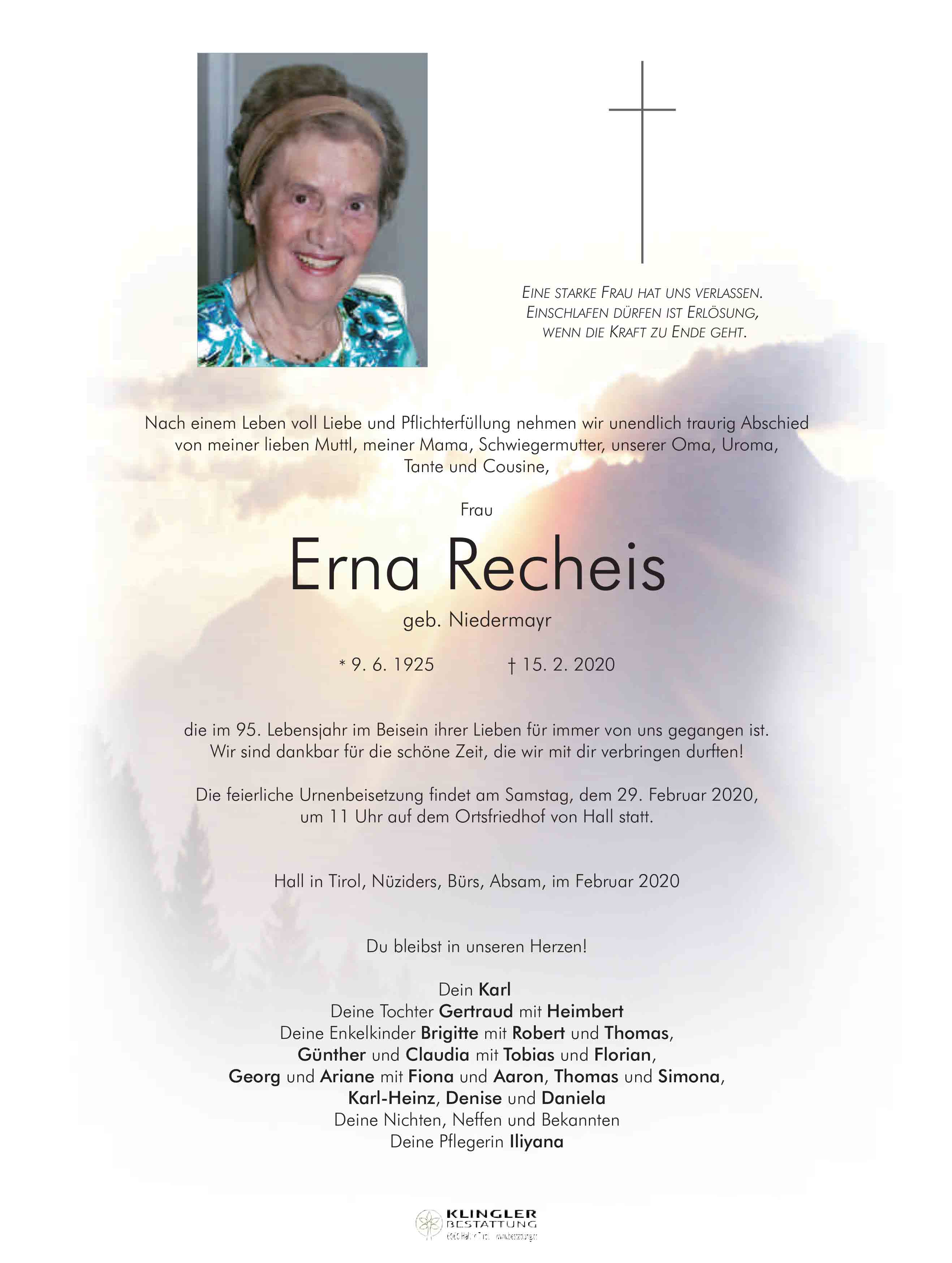 Bestattung wurde durchgeführt von: Mag. Martin Müller Concordia KLINGLER Bestattung Salzburger Straße 33 6060 - Hall in Tirol Tel.: 05223 57 25 40 zum Bestatter