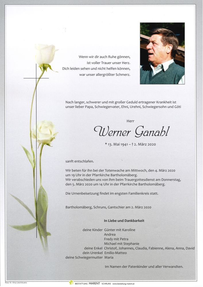 Bestattung wurde durchgeführt von: Peter Marent Bestattung Marent GmbH Gantschierstraße 80 6780 - Schruns Tel.: 05556 77070 zum Bestatter