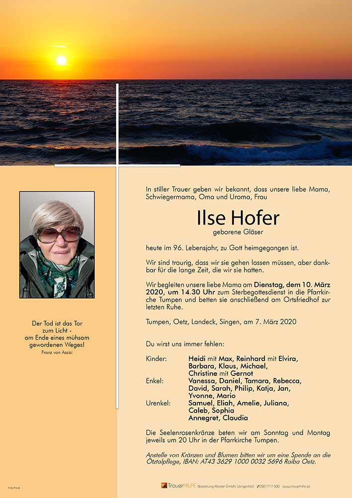 Wir wünschen euch viel Liebe, Kraft und Trost, in der schweren Zeit des Loslassens und schöne Erinnerungen an eure Ilse.