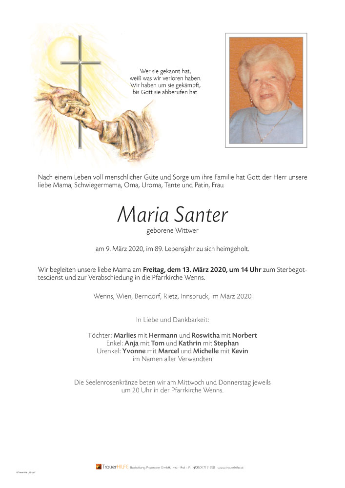 Neue Kerze für Maria Santer entzünden.