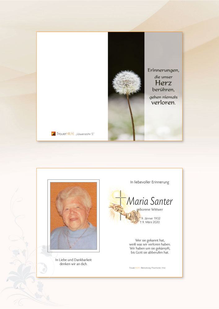Das Leben ist vergänglich, doch die Spuren ihres Lebens und die gemeinsam verbrachte Zeit werden ständig in euch lebendig sein.
