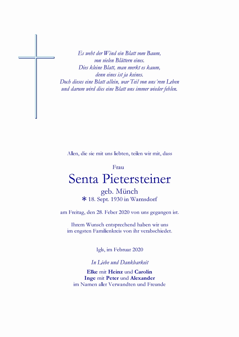 Friedhof Pradler Friedhof, † 28.02.2020 (89 Jahre)