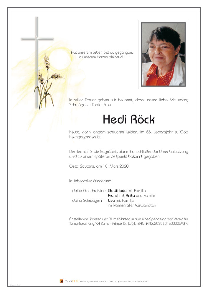 Friedhof Oetz, † 10.03.2020 (62 Jahre)