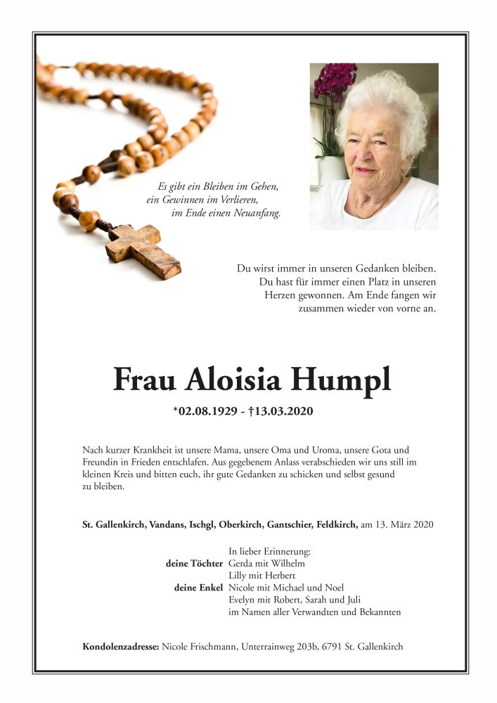 Friedhof St. Gallenkirch, † 13.03.2020 (90 Jahre)