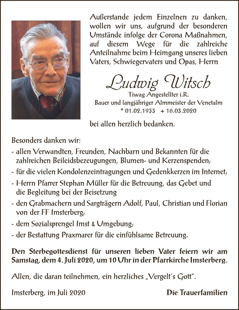 Aufrichtige Anteilnahme Gstrein Patricia18.03.2020 13:58 - patricia gstrein