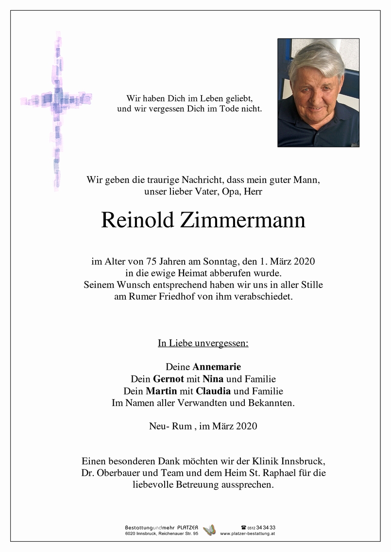 Friedhof Rumer Friedhof, † 01.03.2020 (75 Jahre)
