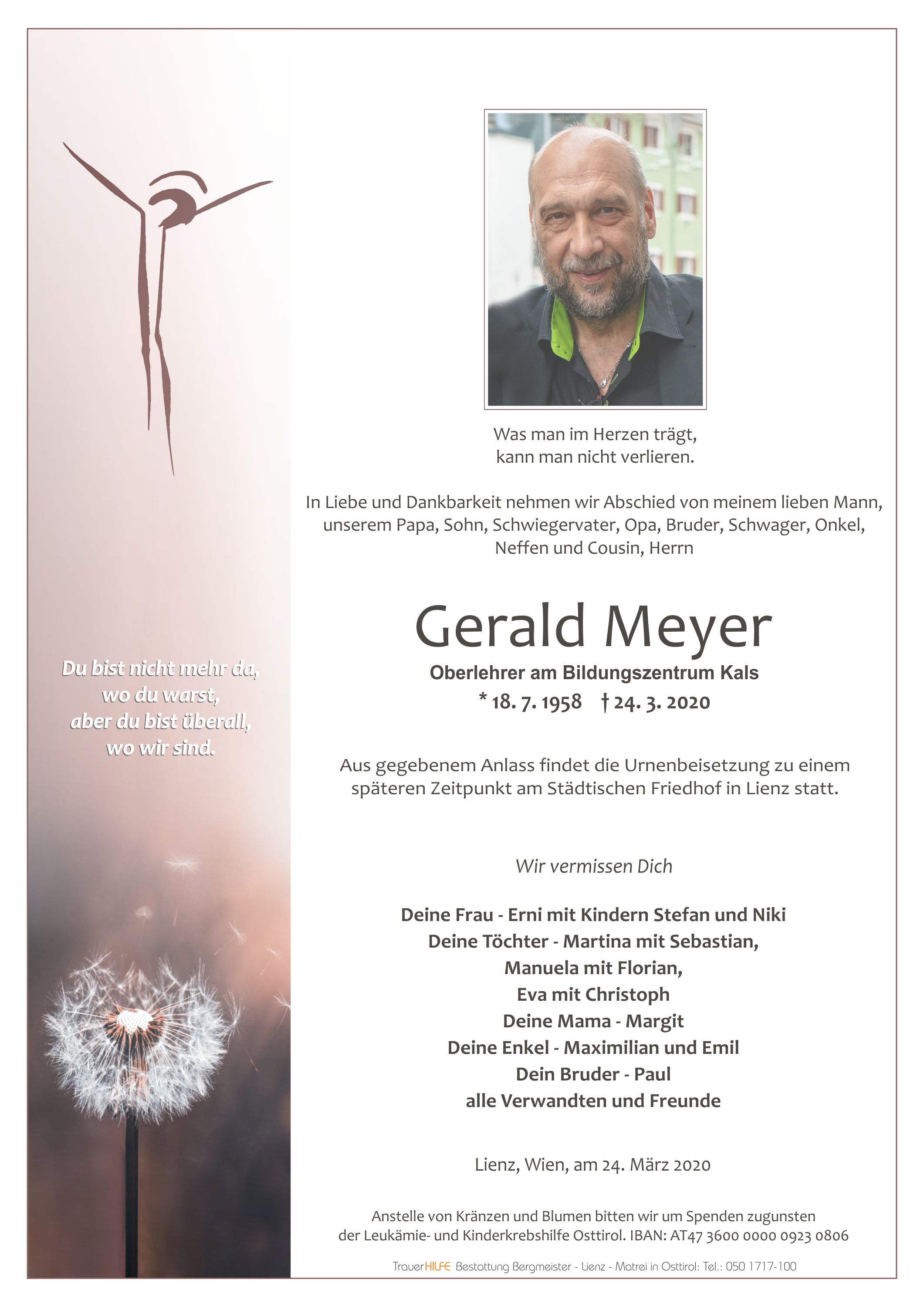 Lieber Gerald, vielen Dank für die lebendige und aufregende Zeit mit dir als Mitschüler im Gymnasium Lienz. Farewell.