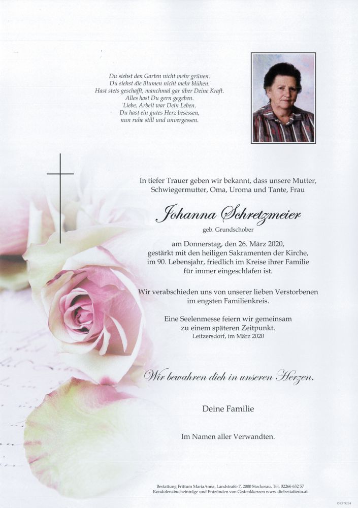 Neue Kerze für Johanna Schretzmeier entzünden.