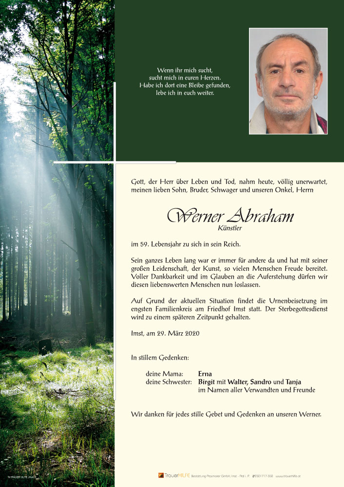 Lieber Werner ich wünsche dir eine gute letzte Reise. Danke für alles31.03.2020 18:49 - Christine Niederbacher