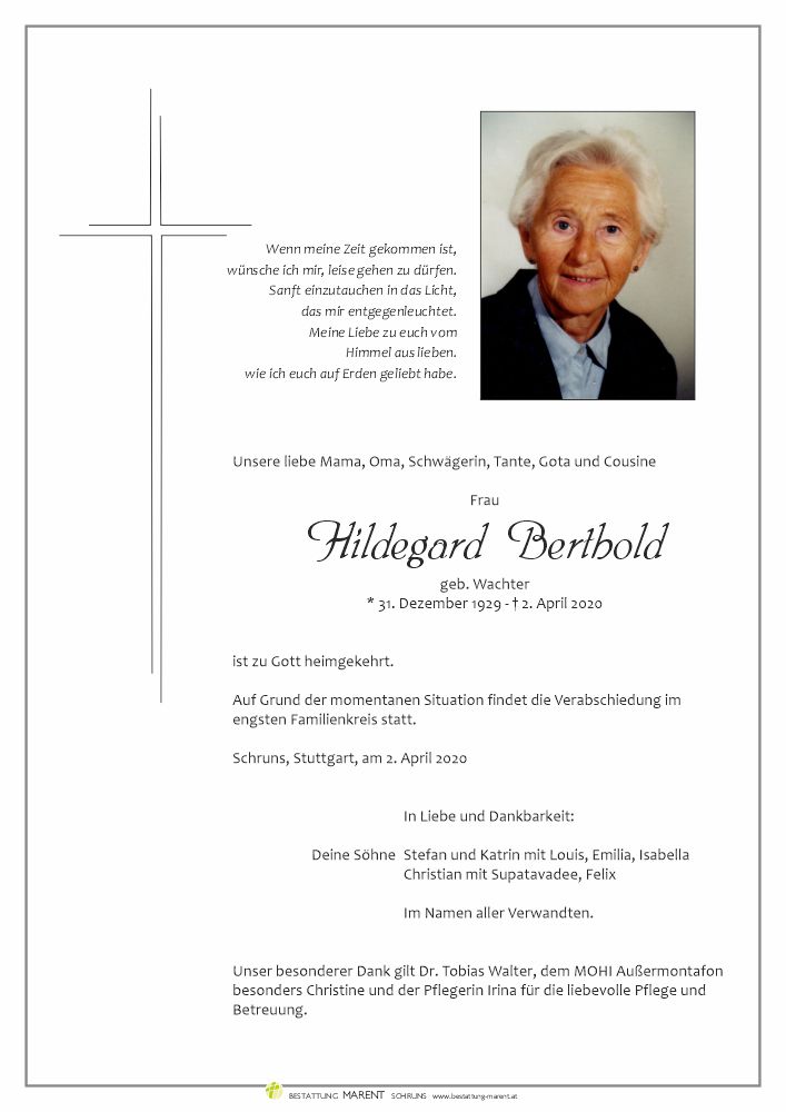 Friedhof Schruns, † 02.04.2020 (90 Jahre)