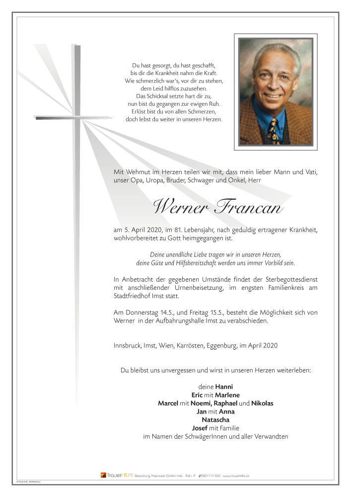 Ruhe in Frieden Werner08.04.2020 11:49 - Obmann Schiklub Imst
