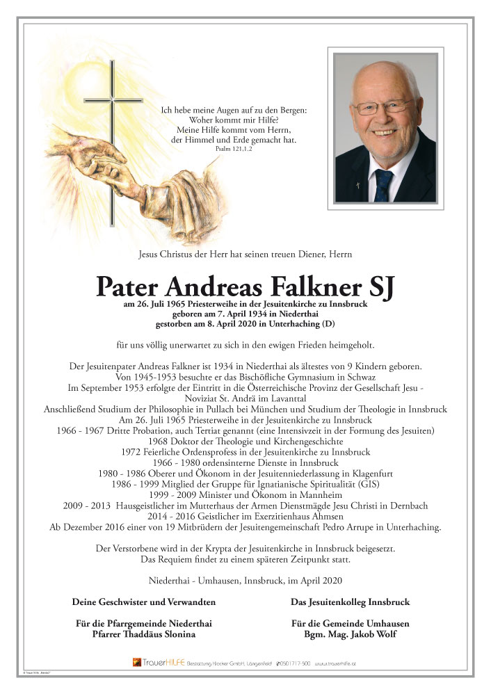 Neue Kerze für Andreas Falkner SJ entzünden.