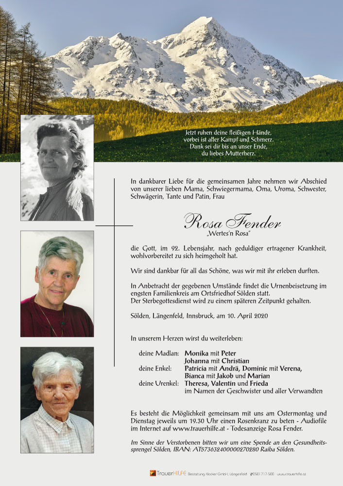 Unser herzliches Beileid und viel Kraft in dieser schweren Zeit.14.04.2020 11:52 - Fam. Petra Gstrein/Hl.Kreuz