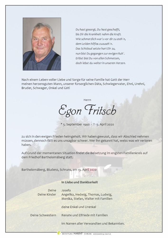 Friedhof Bartholomäberg, † 13.04.2020 (79 Jahre)