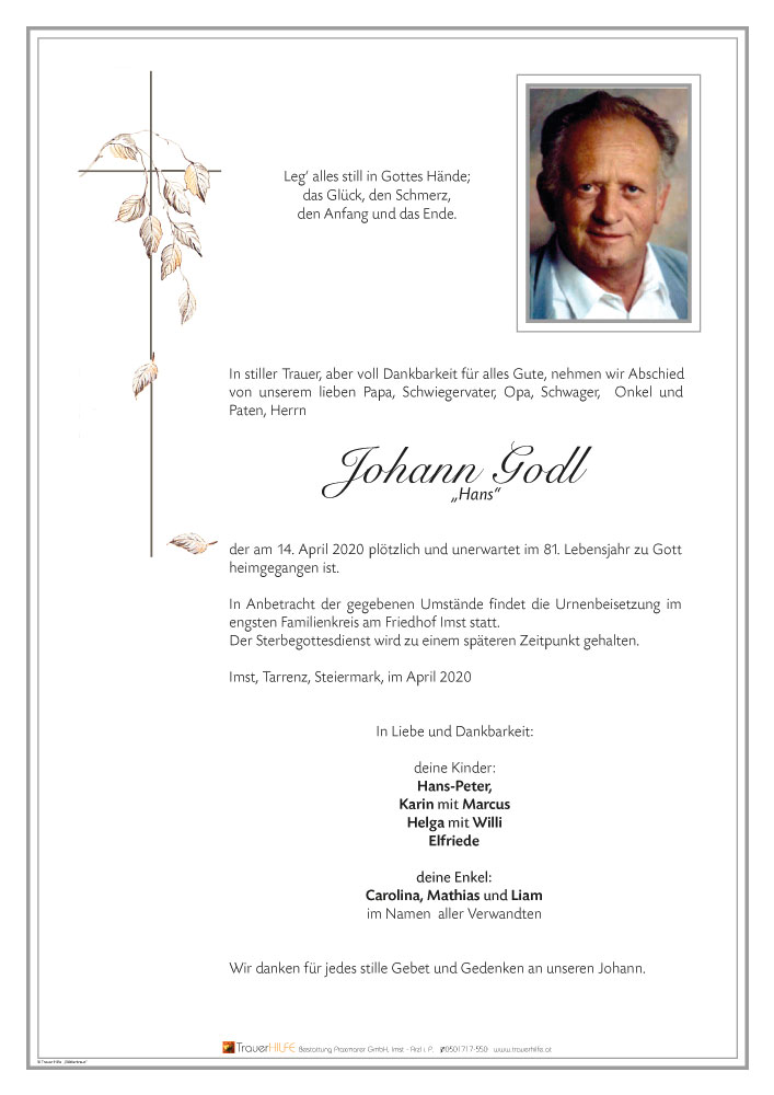Wir verbinden mit Hans die Zeit beim "Ander", seine treuen Besuche zu Sophie's Geburtstag und seit dem Tod eurer Mama die Treffen am Friedhof, die er sehr vermisste.