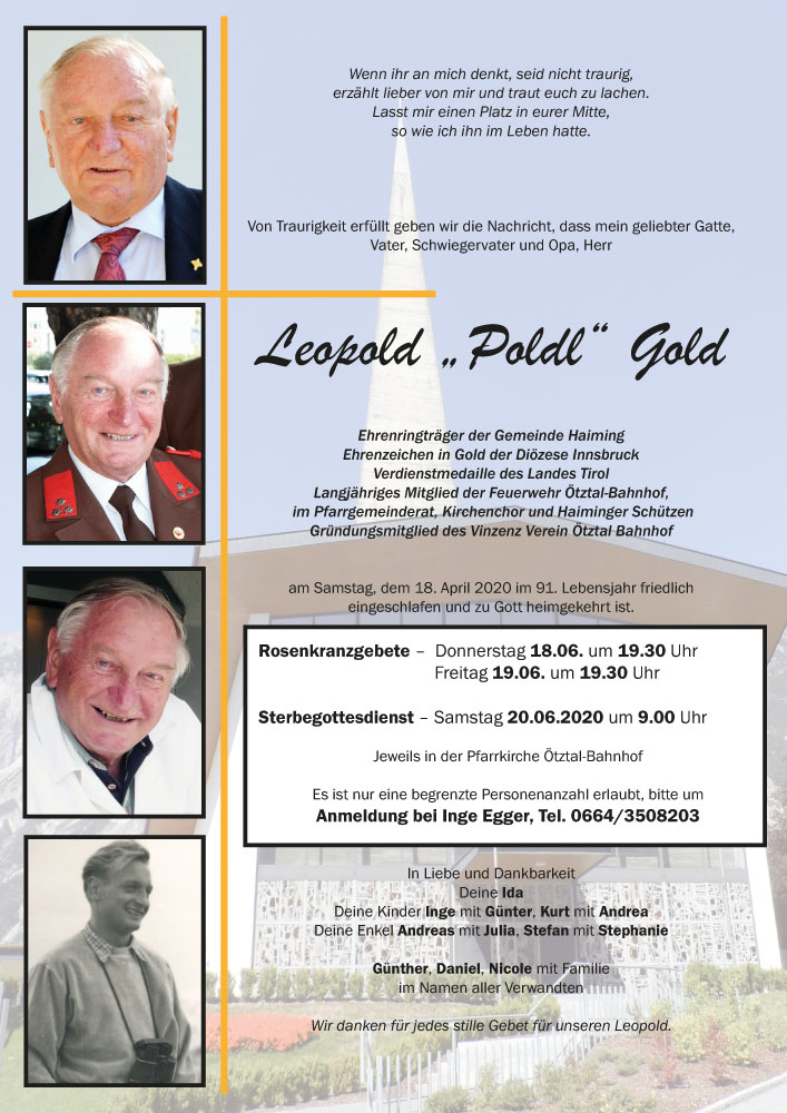 Ich glaube im Sinne aller noch lebenden Mitglieder des früheren Kirchenchores zu sprechen wenn ich sage " Danke Leopold für alles was Du für unsere Gemeinschaft getan hast !"