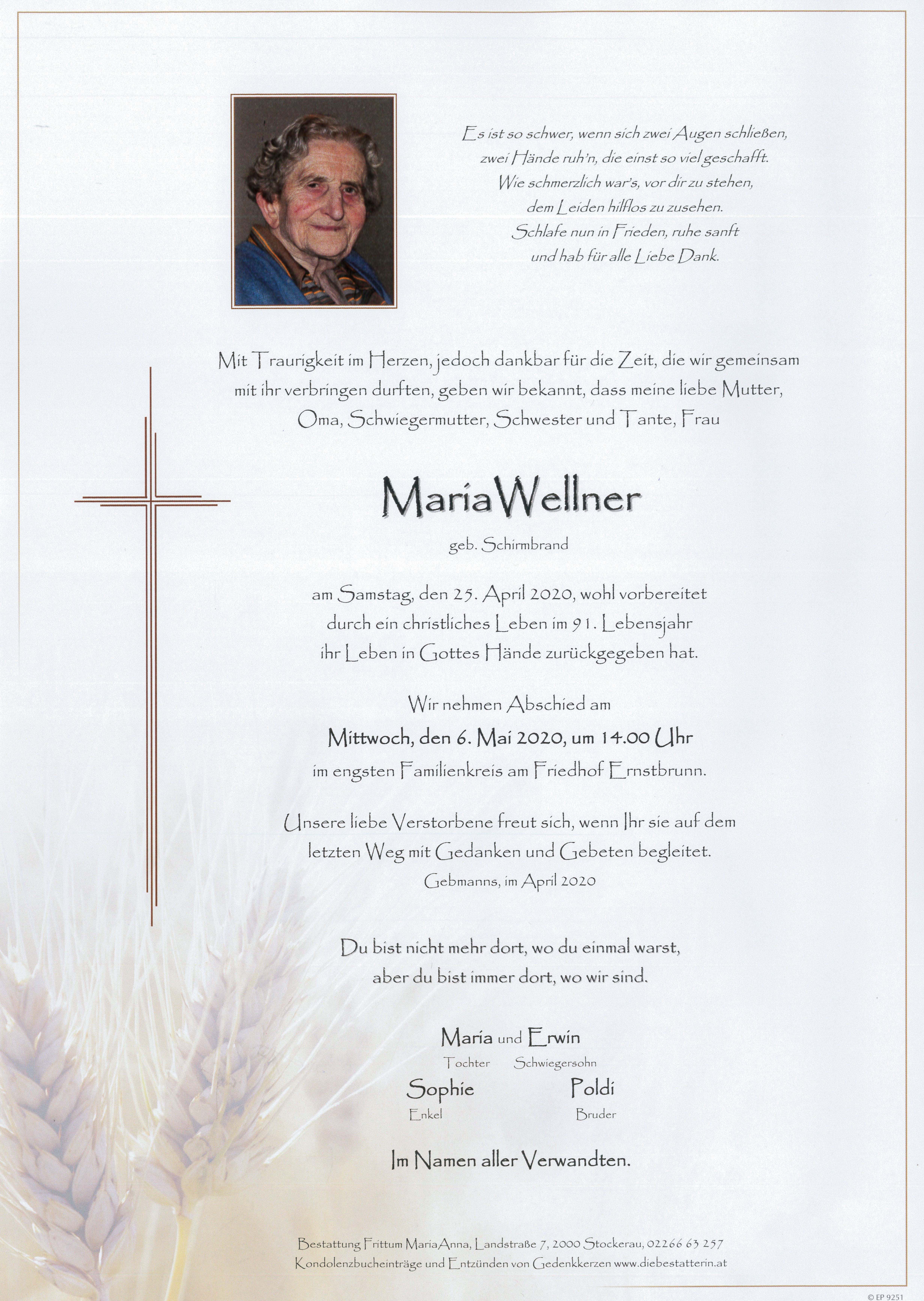 Bestattung wurde durchgeführt von: Frittum Maria Anna TrauerHilfe Bestattung Frittum Bahnstrasse 255 2041 - Wullersdorf Tel.: 050 1717-600 zum Bestatter