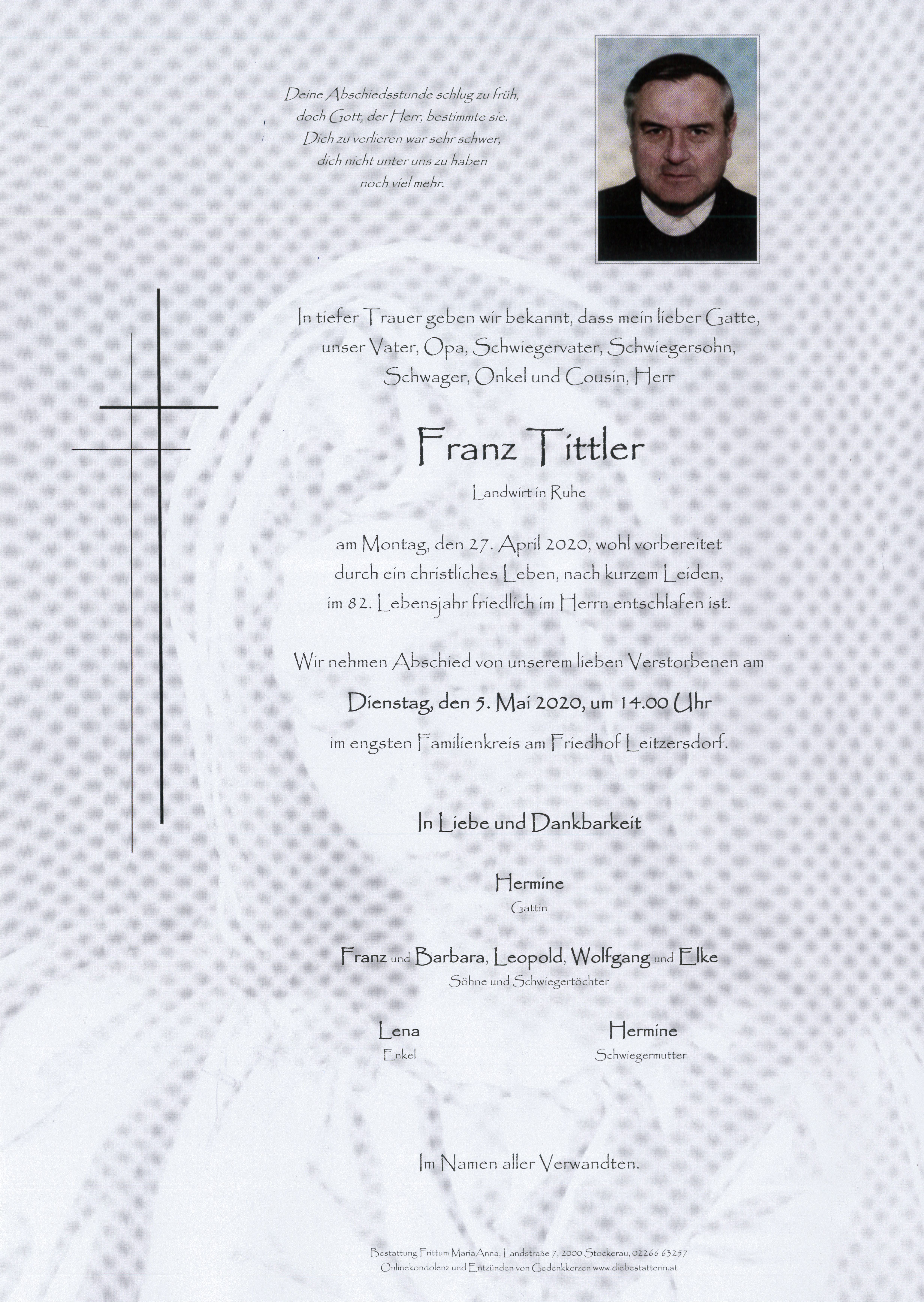 Bestattung wurde durchgeführt von: Frittum Maria Anna TrauerHilfe Bestattung Frittum Bahnstrasse 255 2041 - Wullersdorf Tel.: 050 1717-600 zum Bestatter
