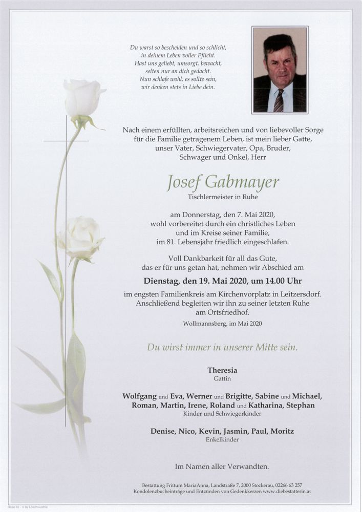 Aufrichtige Anteilnahme, Maria . Josef Müllner