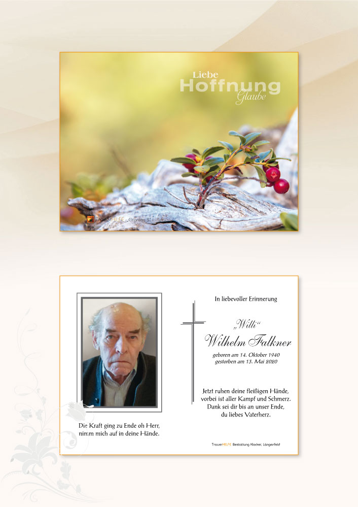 Neue Kerze für Wilhelm Falkner entzünden.