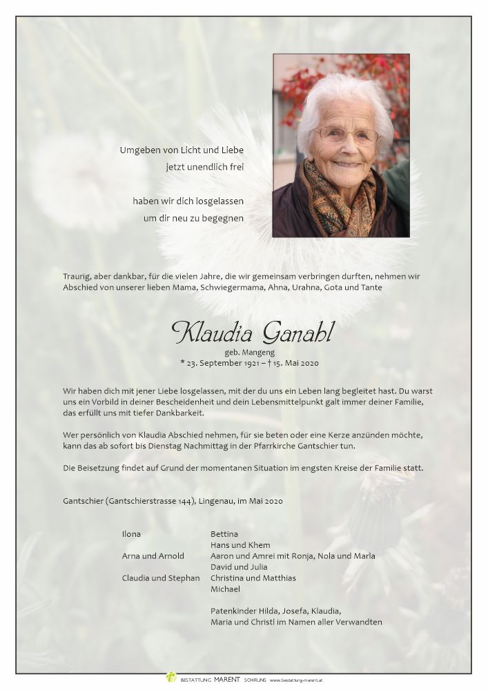 Friedhof Gantschier, † 15.05.2020 (98 Jahre)