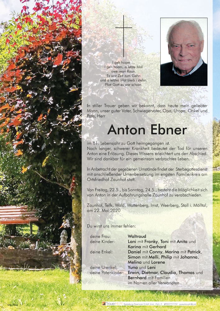 Aufrichtige Anteilnahme entbietet euch Beatrix Schwitzer (ehemalige Schulkollegin)23.05.2020 17:34 - Beatrix Schwitzer (Meitinger)