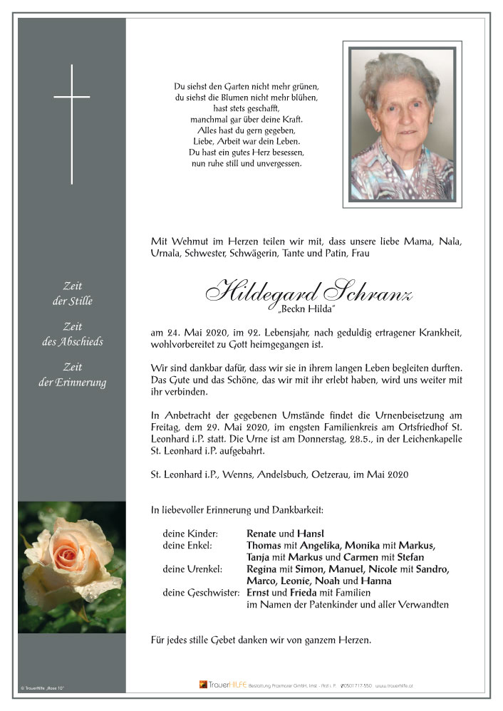 Aufrichtige Anteilnahme29.05.2020 20:14 - Familie Holzknecht, Eggmahd