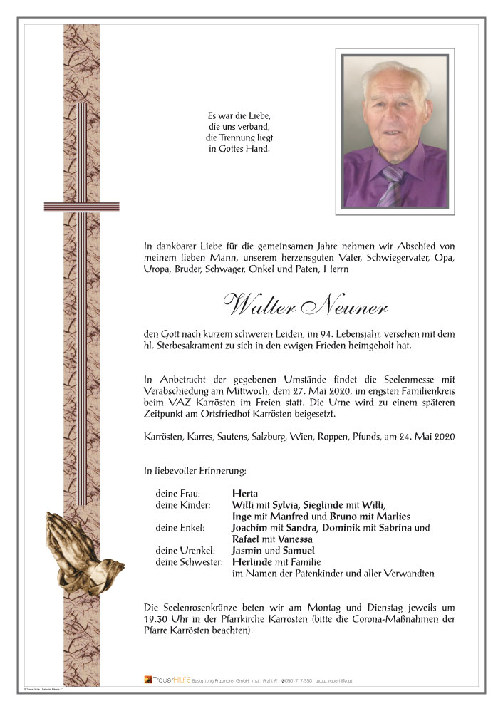 Der Herr schenke Walter die ewige Freude, wie behalten ihn in lieber Erinnerung.