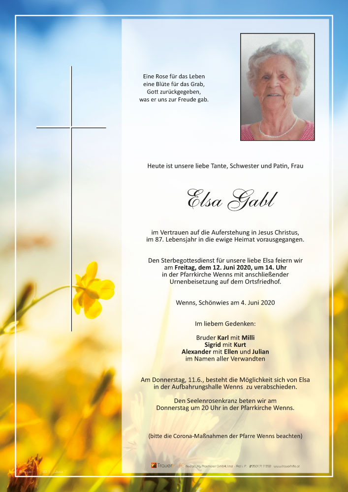 Friedhof Wenns, † 04.06.2020 (86 Jahre)