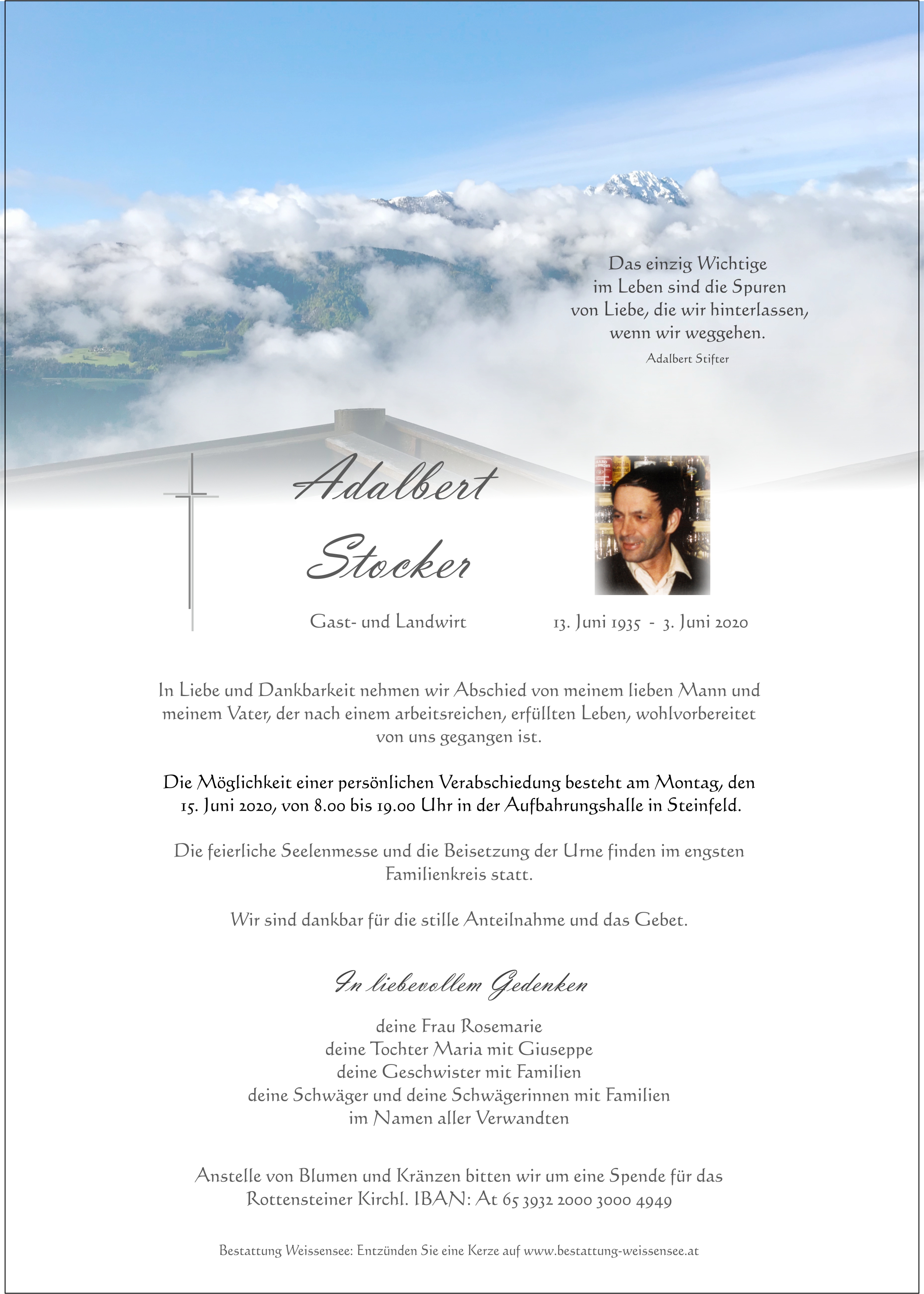 Bestattung wurde durchgeführt von: Markus Ertl Bestattung Weissensee Neusach 26 9762 - Weißensee Tel.: 04713 22 29 zum Bestatter