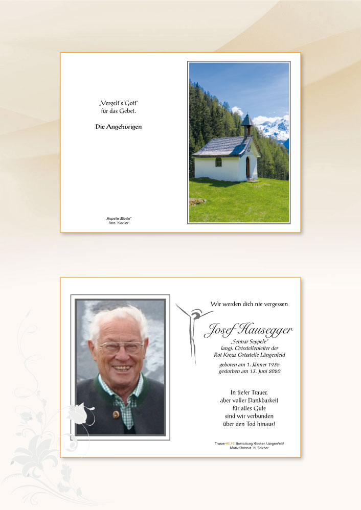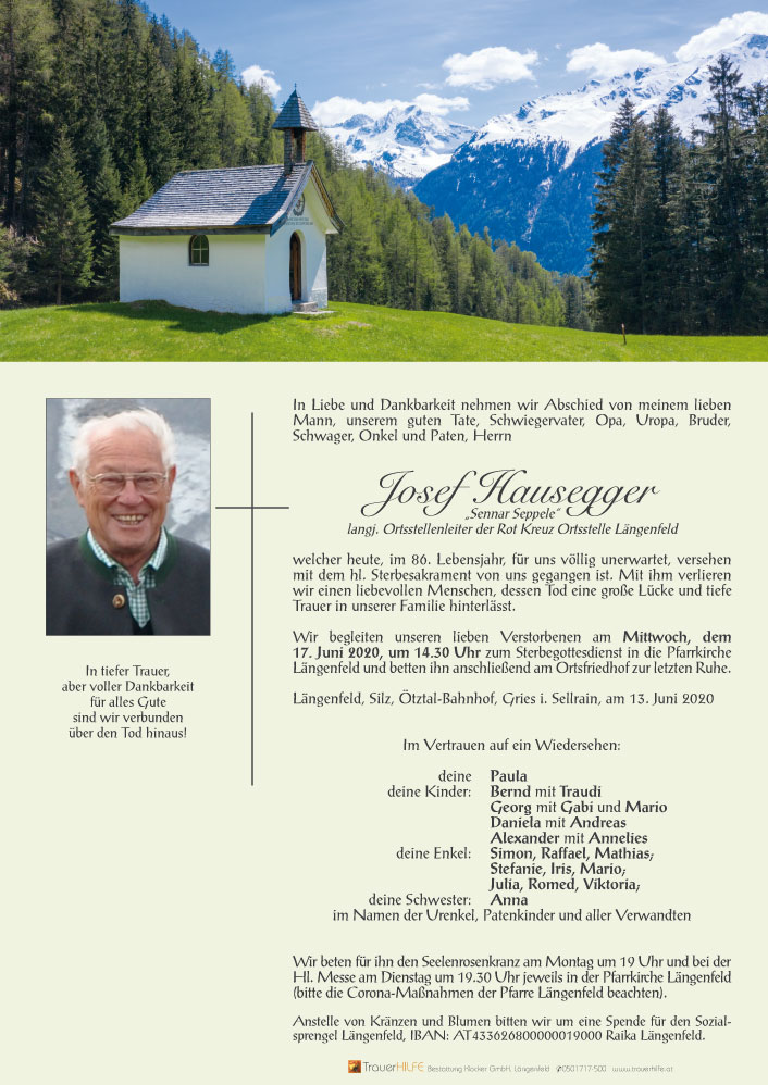 Ganz still und leise ohne ein Wort gingst du lieber Seppl von deinen Lieben fort du hast ein gutes Herz besessen es ist so schwer es zu verstehn dass wir dich niemals wiedersehn15.06.2020 12:55 - Haid Mario