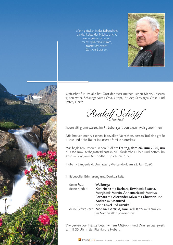 Lieber Rudl, pfiat di und ruhe in Frieden!