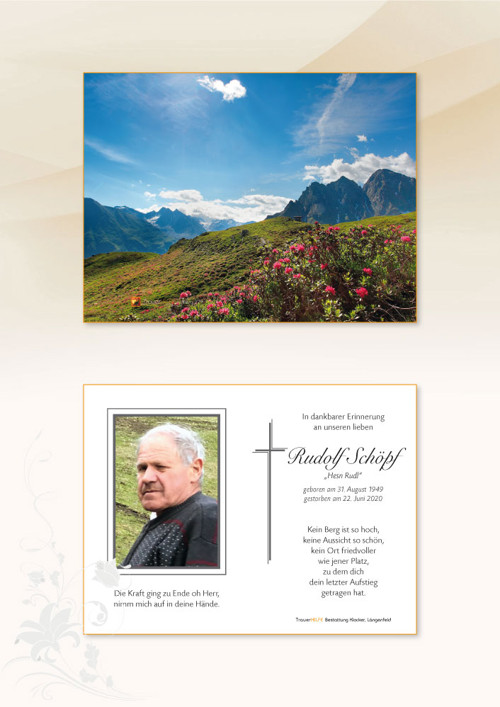 Unser Leben ist in Gottes Hand, wenn es sein Wille ist, dann trauert nicht um mich, sondern gedenket meiner in Liebe.