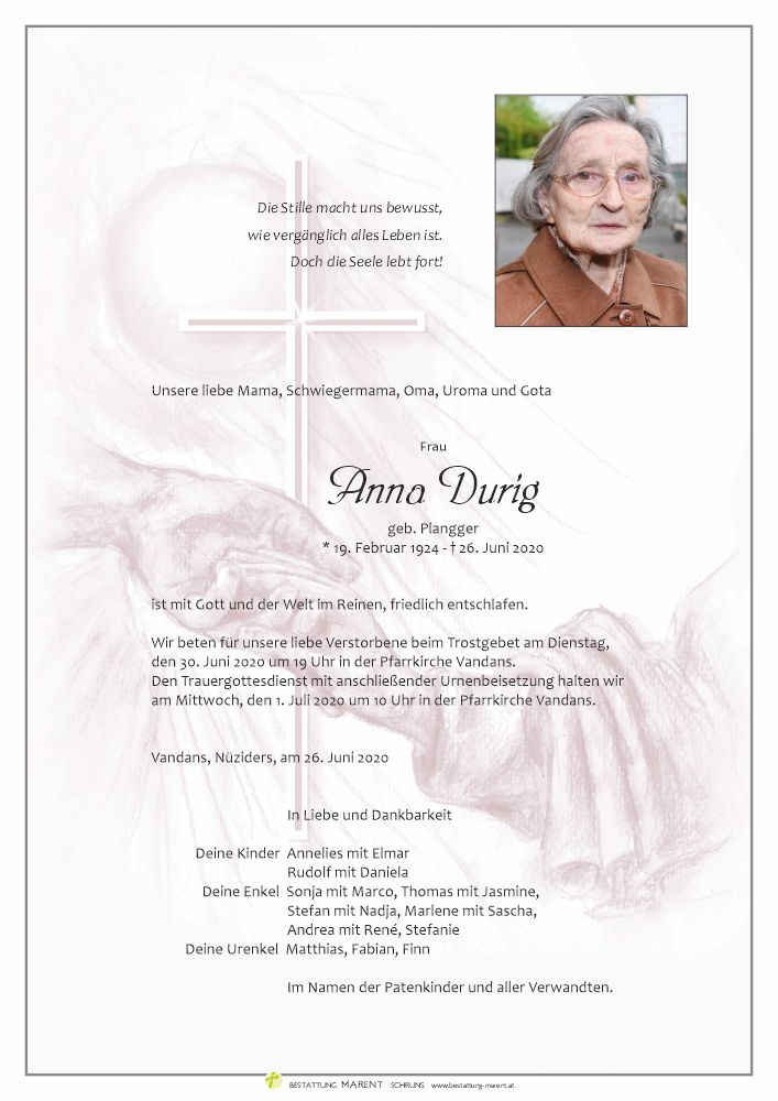 Friedhof Vandans, † 26.06.2020 (96 Jahre)