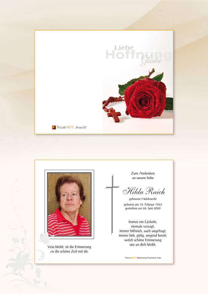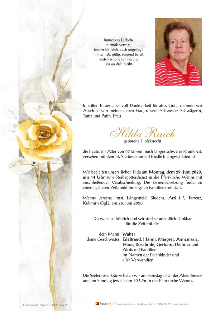 Aufrichtige Anteilnahme am Tod von Hilda entbietet, dir Walter und den Geschwistern von Hilda