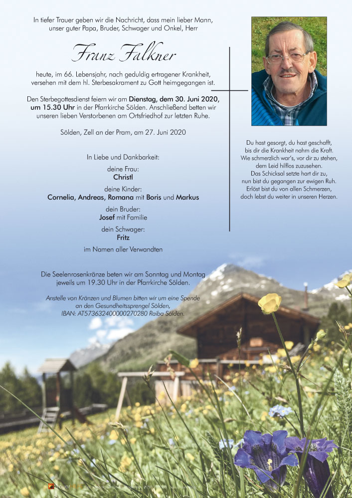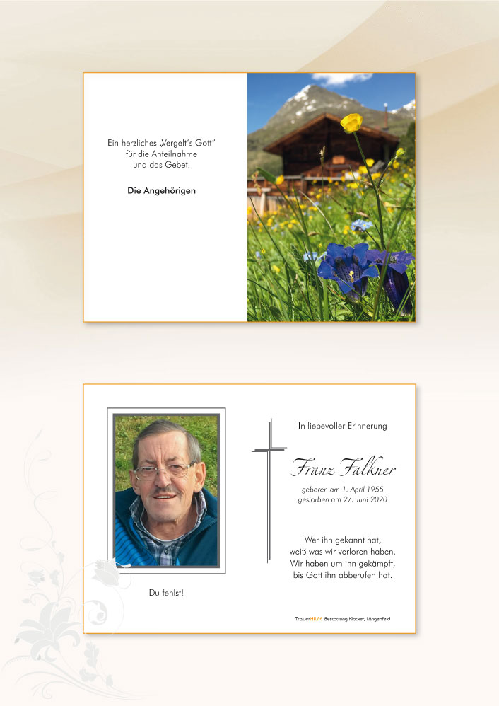Liebe Trauerfamilie, ich durfte Franz als einen unglaublich zufriedenen und bescheidenen Mensch kennenlernen. Ich wünsche euch aus tiefstem Herzen ganz viel Kraft, und ich wünsche euch das tröstende Vertrauen darauf, dass euer Glaube an ein Wiedersehen euch durch diese unglaublich schwere Zeit begleiten möge. In aufrichtiger Anteilnahme und mit lieben Gedanken an euren Franz! Kathrin Plörer