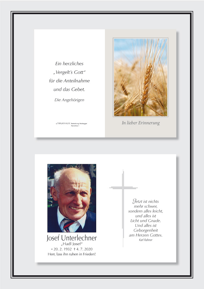 Erschüttert über das Ableben des lieben Josef, meinem herzensguten Göta, möchten wir vorerst auf diesem Wege unser herzliches Beileid aussprechen.