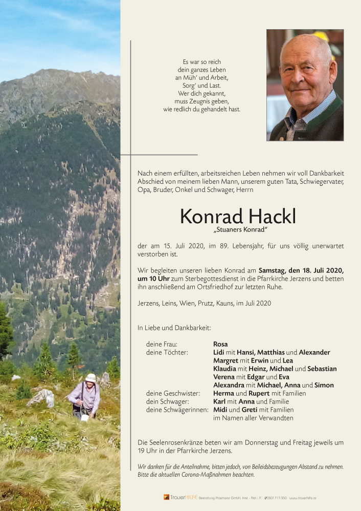 Unsere aufrichtige Anteilnahme am Heimgang von Konrad.