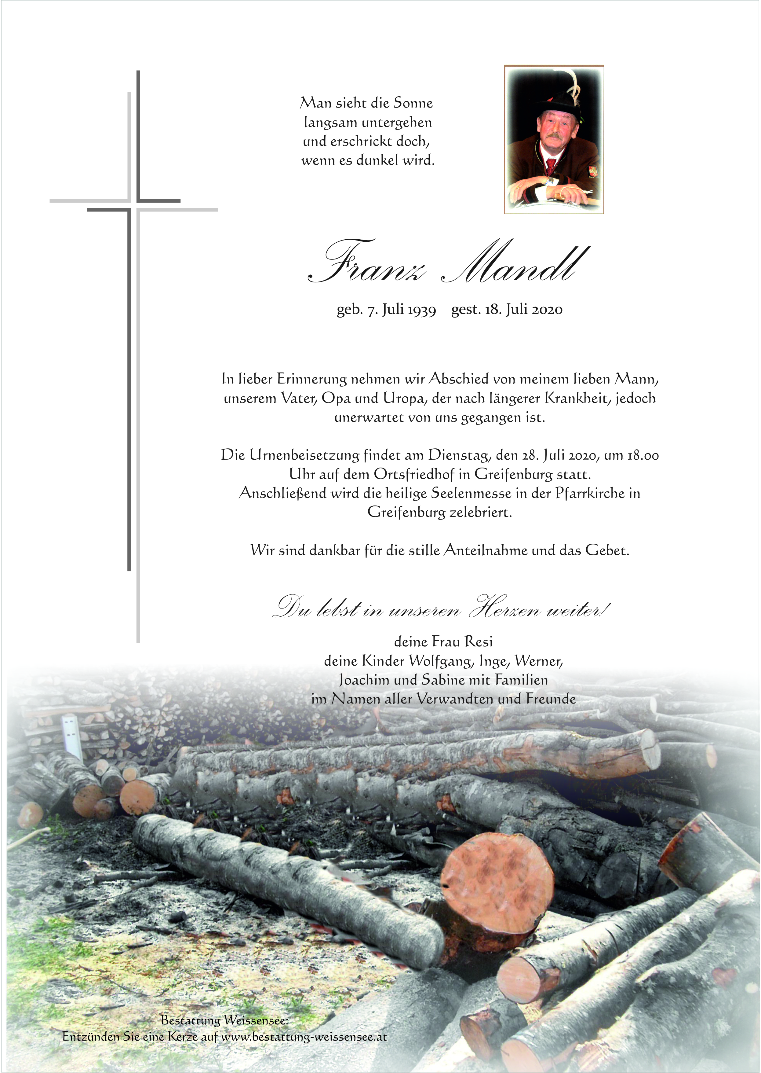 Neue Kerze für Franz Mandl entzünden.