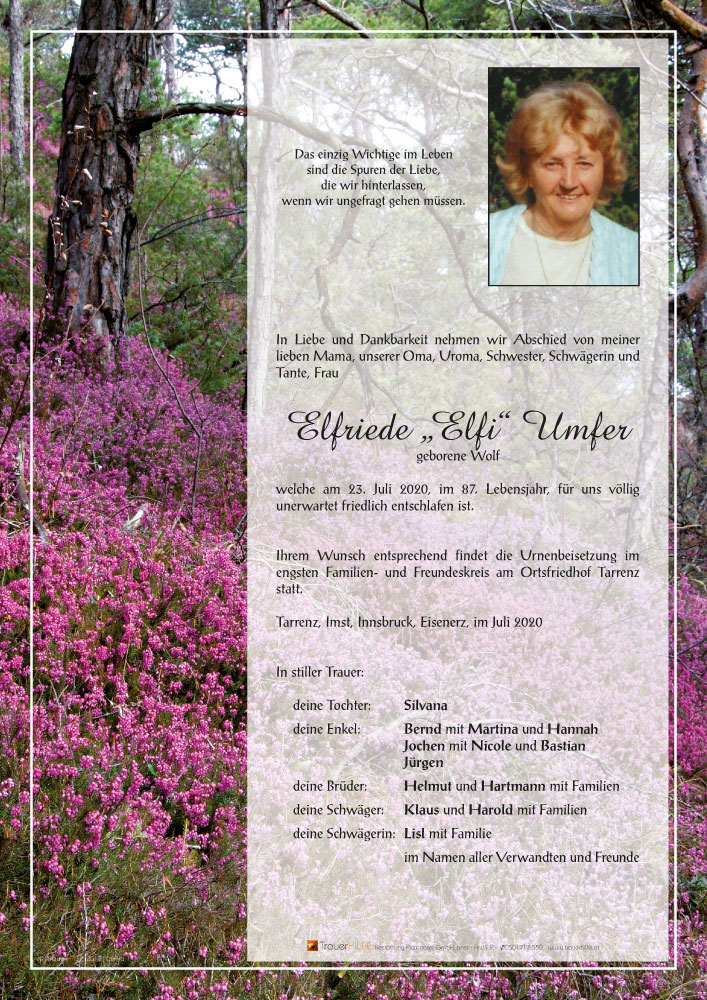 mit Bestürzung haben wir vom Tod deiner Mama, eurer Oma u. Uroma gehört.