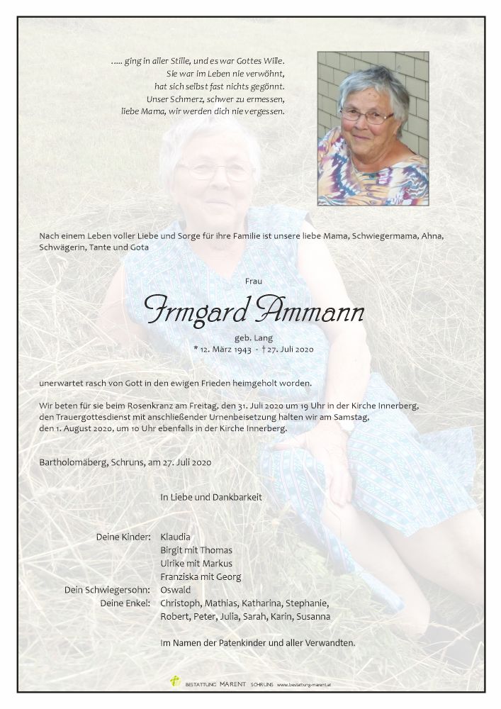 Friedhof Innerberg, † 27.07.2020 (77 Jahre)